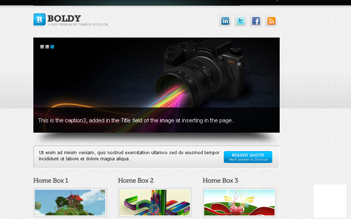 Boldy is the free wordpress 3.0 theme from wordpress.site5.net. This is a cool theme with an attractive color combination and design style. The Best part from this free themes is the Ninvo Slider features which can make your wordpress site more dynamic and attractive.